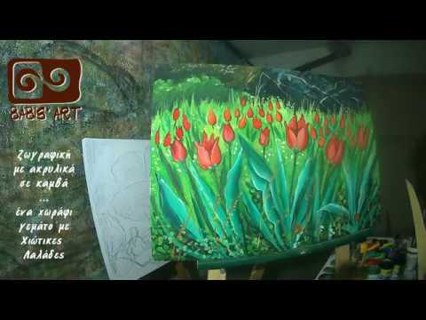 Painting wild tulips - acrylic/ ΣχεδιαΖΩγραφίζω ... ένα χωράφι με λαλάδε...