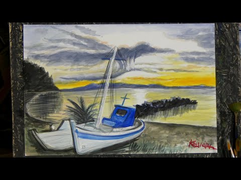 ΣχεδιαΖΩγραφίζω Πρωί στη Δασκαλόπετρα/a morning with an white boat
